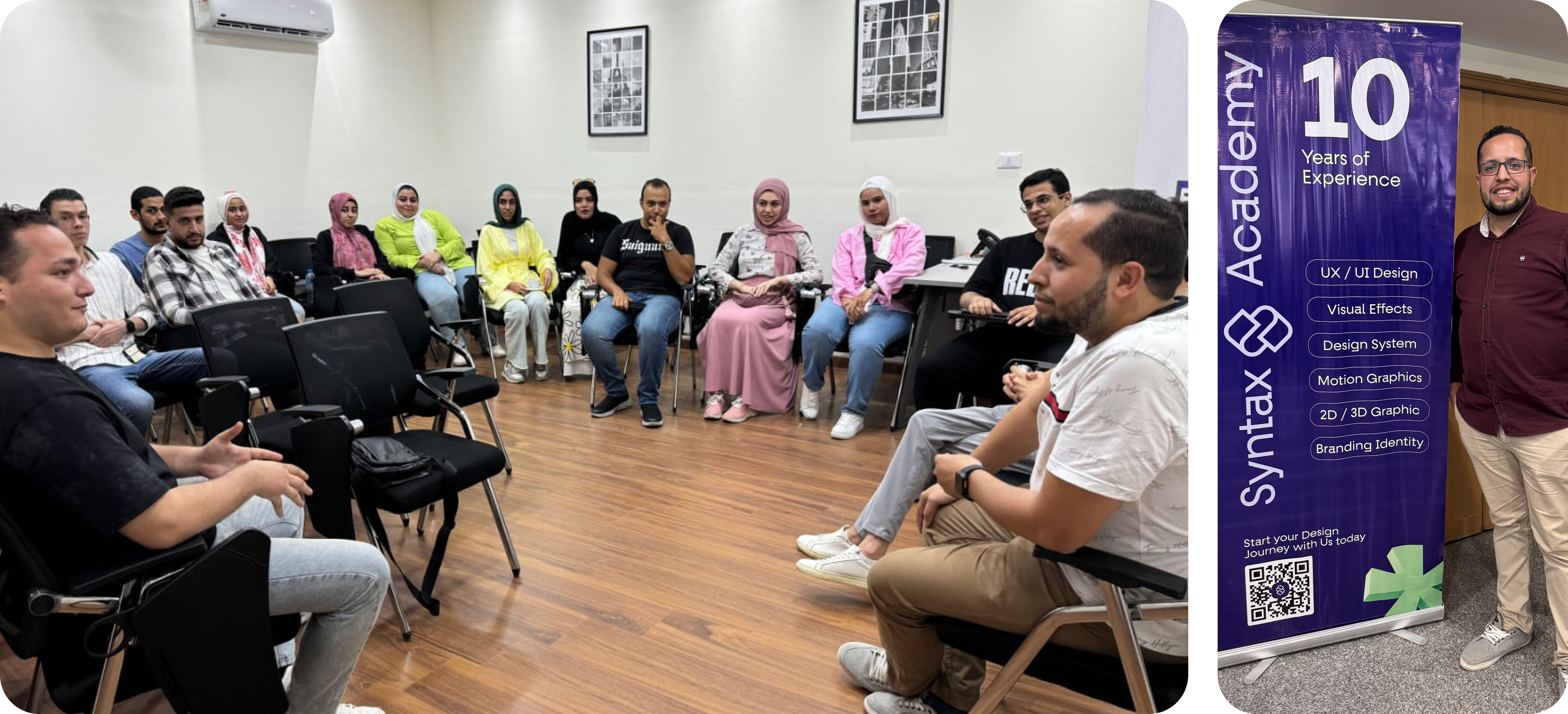 To build a thriving community where designers, tech professionals, and creatives can connect, learn, and grow. Through events, workshops, and specialized courses, we aim to make design education accessible to everyone, empowering individuals to innovate and shape the future of digital experiences across Egypt and beyond.